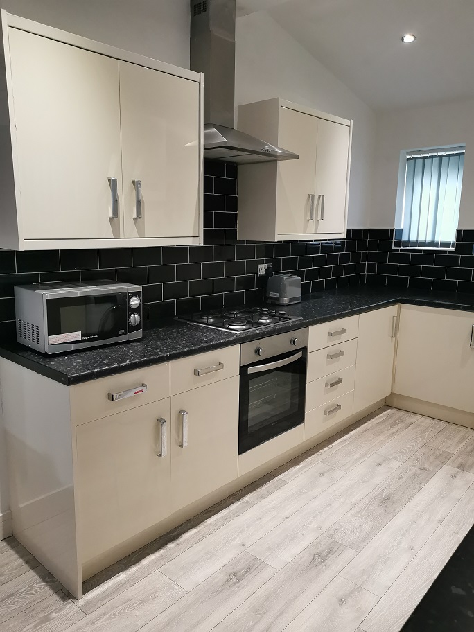 This 3 bed house gives you everything you could want. The large living room with wall mounted TV, gives you a great social area for you to put your feet up and watch your favourite TV series. In the spacious kitchen, there is ample storage & 4 seater dining table.